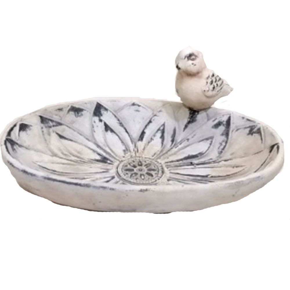 Bebedero gris de cemento con pajarito de30x17.5x5cm