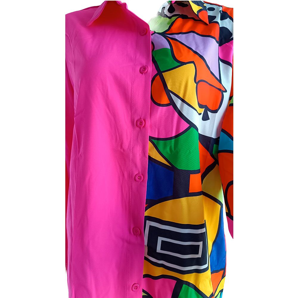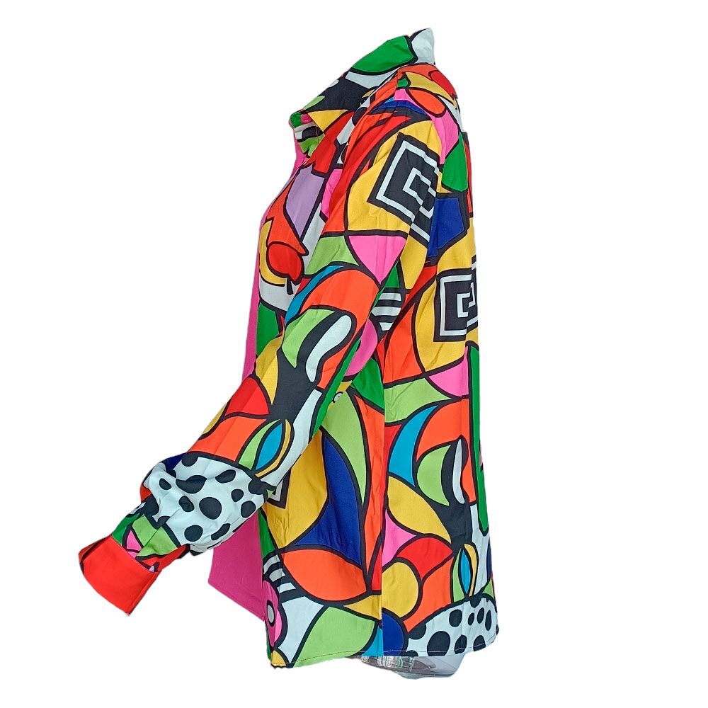 Blusa para dama diseño mitad rosa con rostros de colores talla L