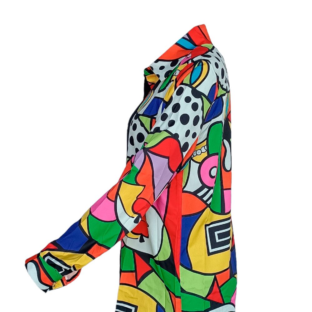 Blusa para dama diseño mitad negra con rostros de colores talla M