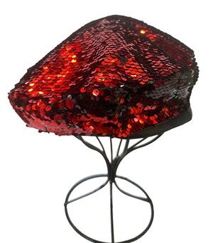 Boina francesa con lentejuelas rojas de 25x25x7cm