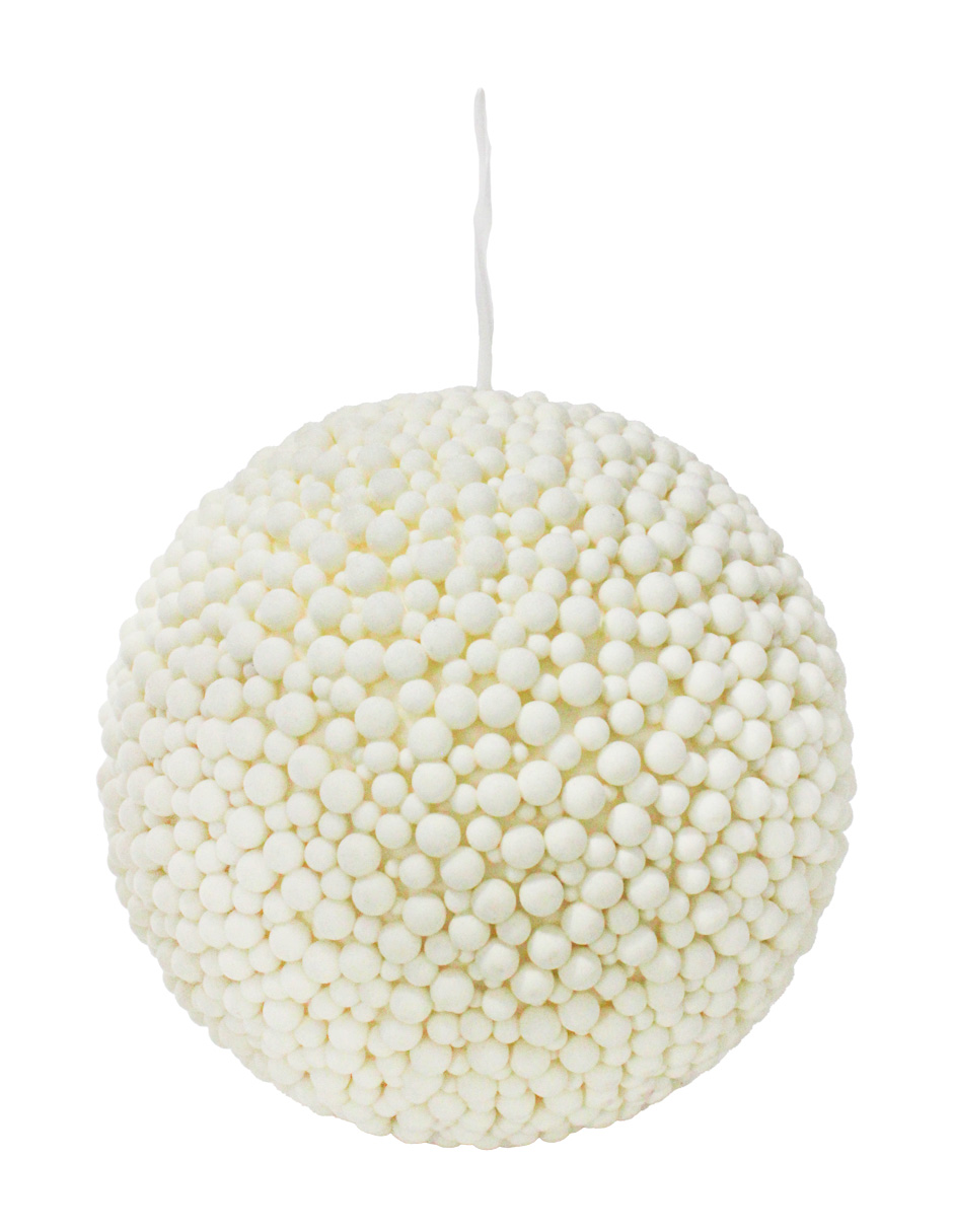 Exclusiva bola decorativa de tela en color vino complementada con suaves pompones. Su diseño texturizado aporta lujo y dramatismo a cualquier espacio.