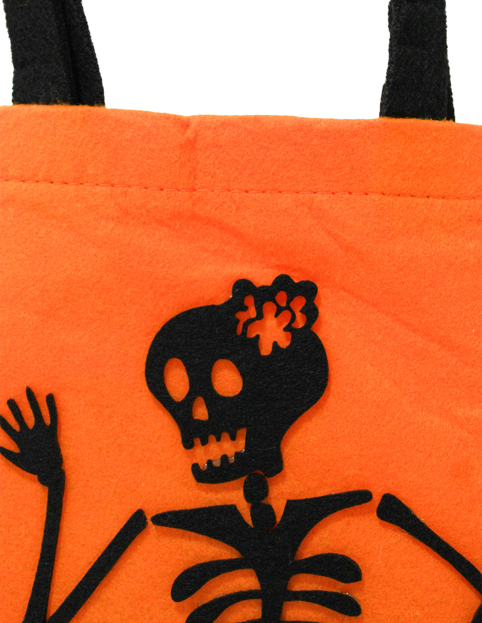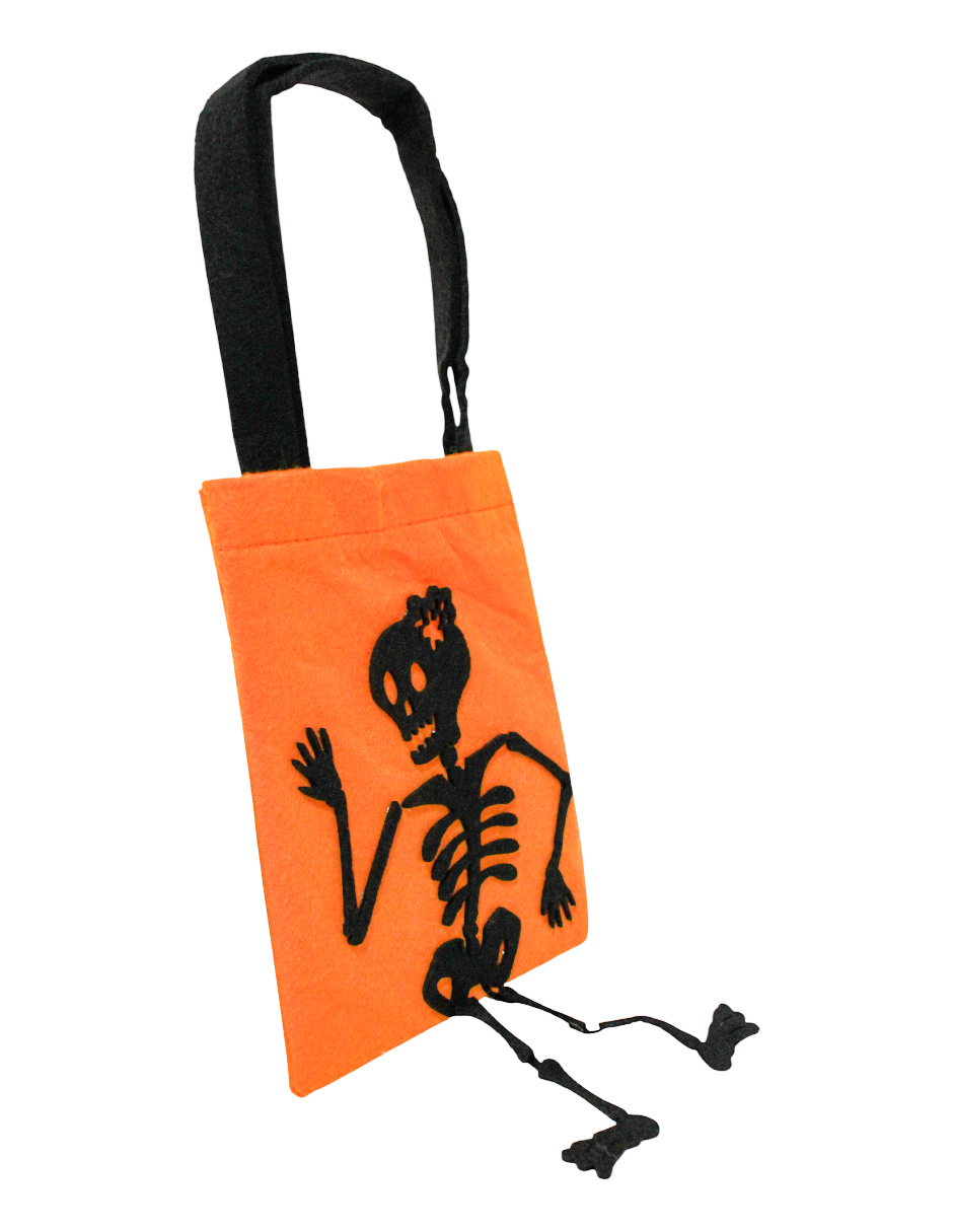 Un toque de misterio y terror para Halloween. Esta bolsa naranja con diseño de esqueleto es la pieza perfecta para guardar tu “calaverita” en la temporada de terror. Con sus medidas de 14x25x1cm, su diseño lleno de detalles evoca el misterio y la diversión.