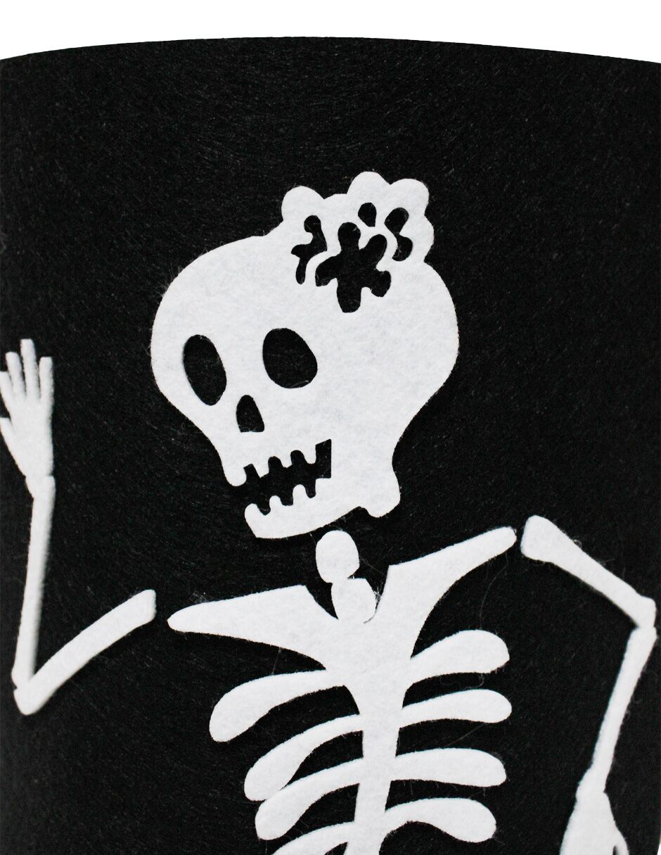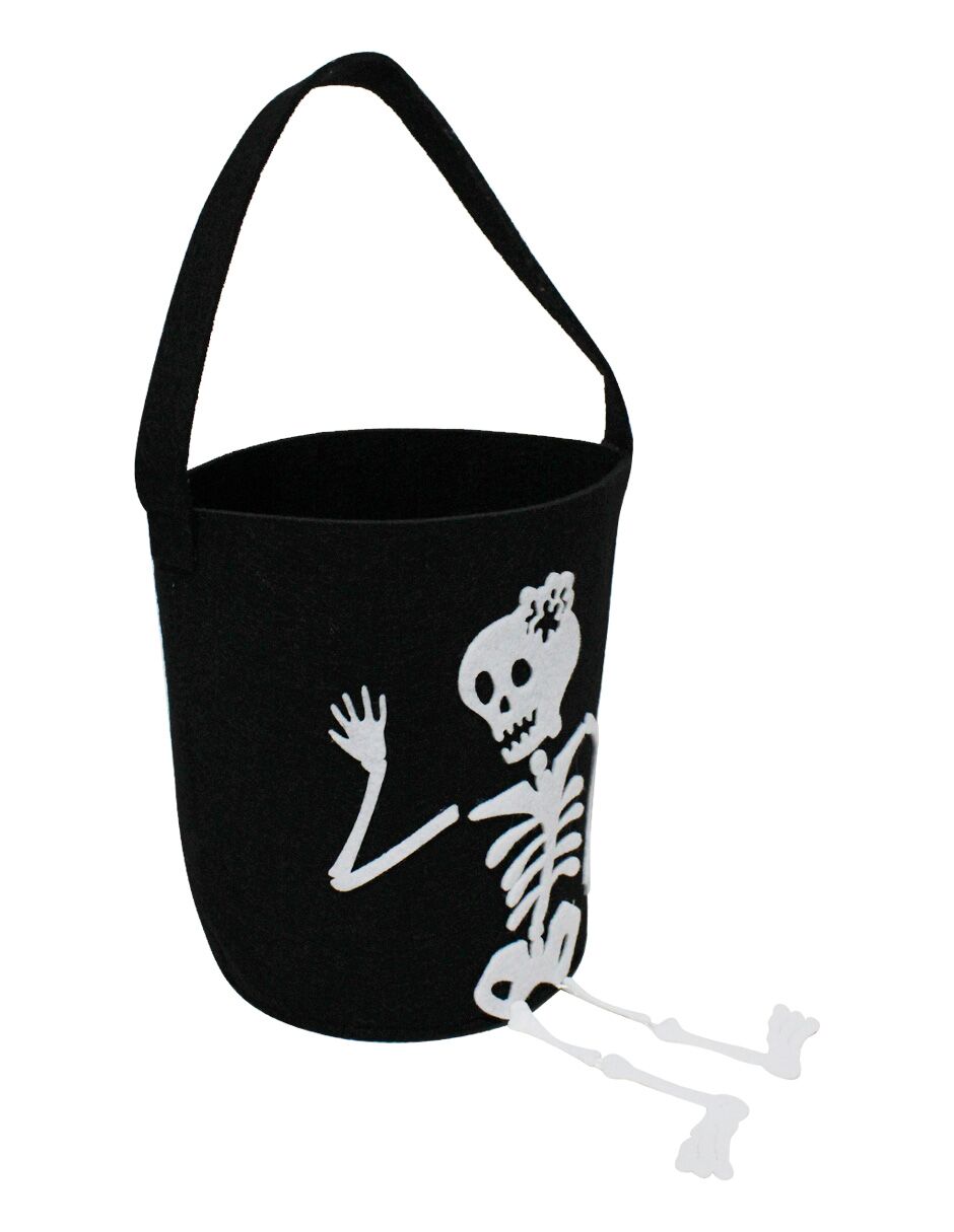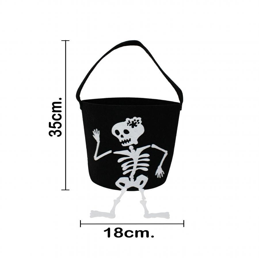 Un toque de misterio y terror para Halloween. Esta bolsa negra con diseño de esqueleto es la pieza perfecta para guardar tu “calaverita” en la temporada de terror. Con sus medidas de 16x16x20cm, su diseño lleno de detalles evoca el misterio y la diversión.