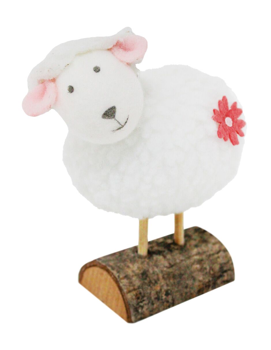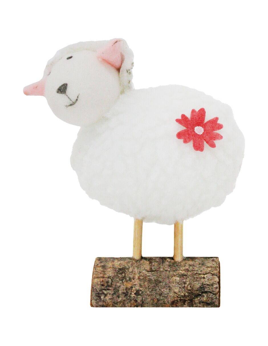 Borrego de peluche blanco en tronco de madera de 9x5x11cm