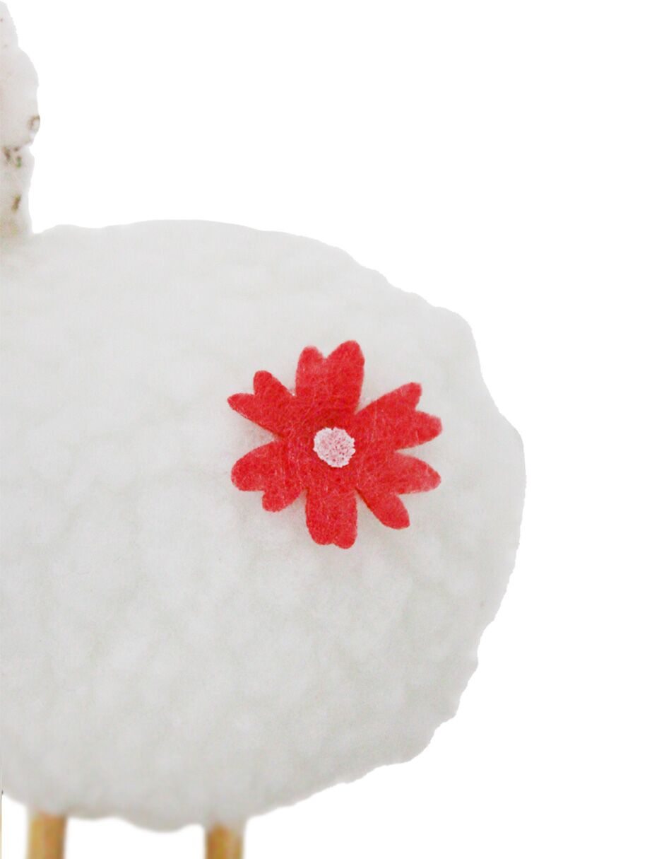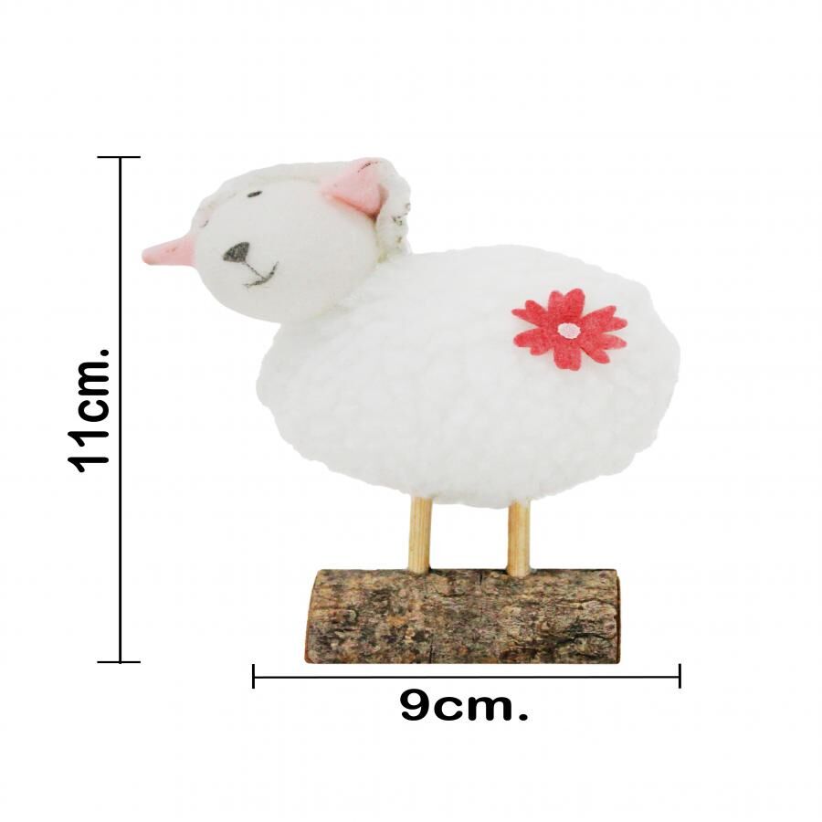 Borrego de peluche blanco en base de madera de 9x5x11cm