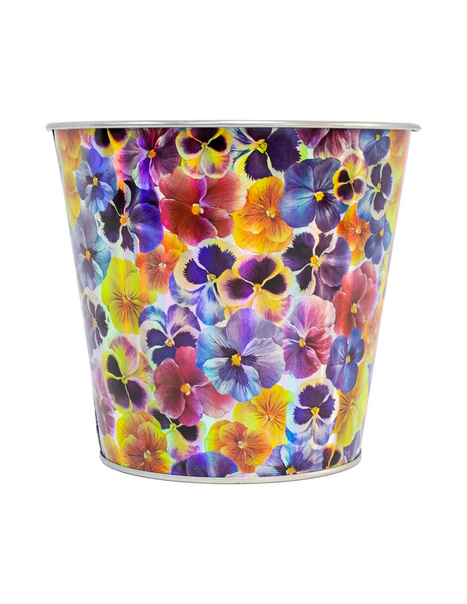 Bote redondo de almacenamiento con un clásico diseño de flores de colores. Ideal para infusiones, galletas o como contenedor decorativo. El material es metal. Medidas: 15 x 13.8 x 11 cm.