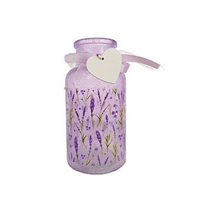 Botella de vidrio diseño lavanda con listón de 6.8×12.5cm