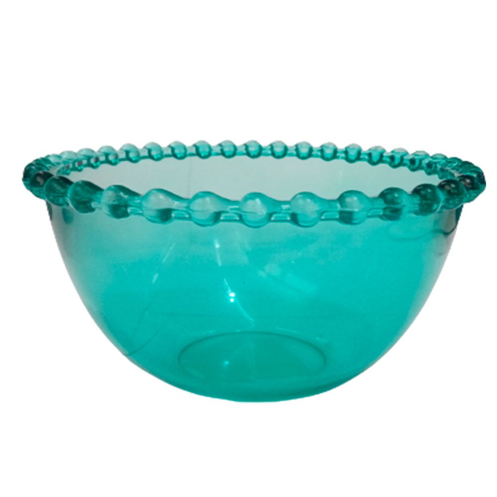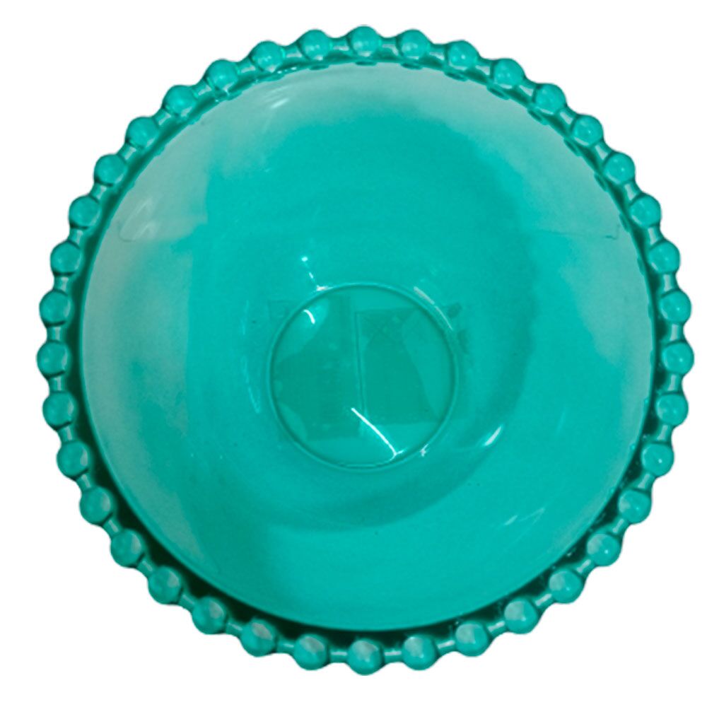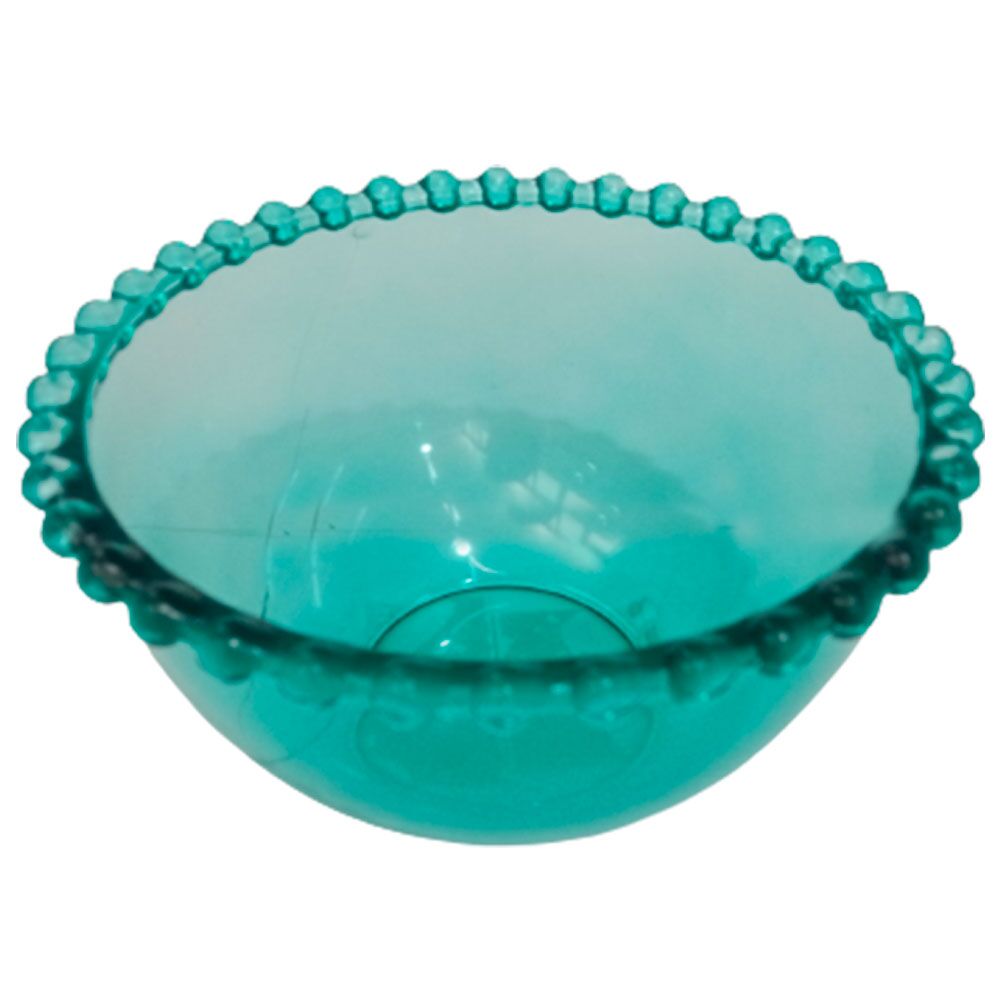 Bowl de cristal transparente azul turquesa con bolitas en la orilla de 16.3×16.3×8.5