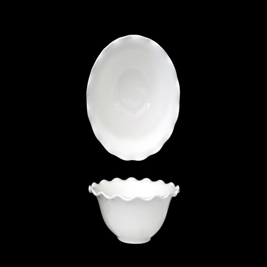 Sirve tus cereales o sopas con un toque de elegancia y estilo con este bowl de porcelana blanca. Su delicada orilla ondulada te hará sentir la sofisticación y el refinamiento. Con medidas de 14 cm, es ideal para tus desayunos o comidas ligeras.