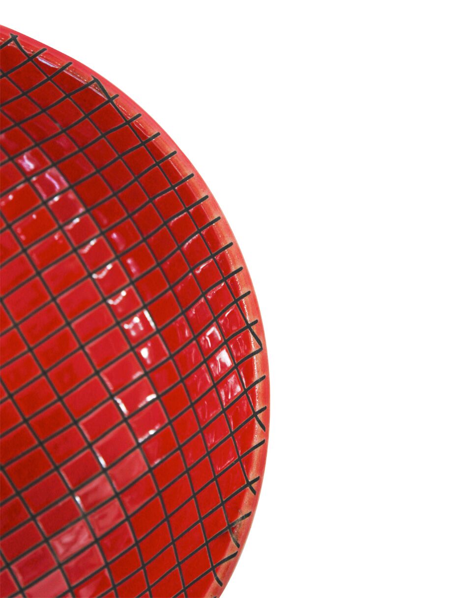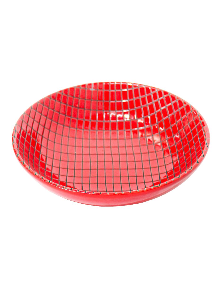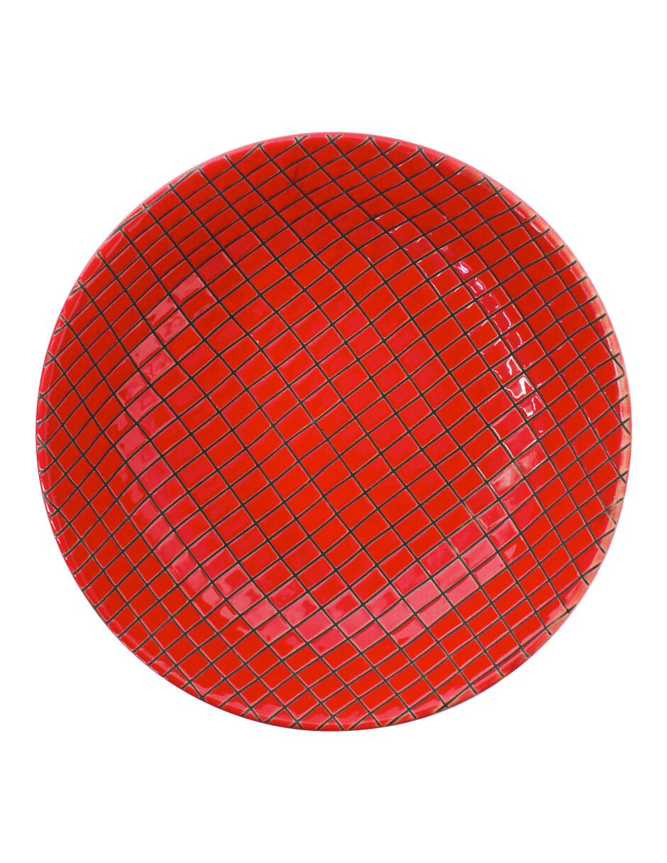 Un bowl de porcelana en color rojo con un clásico diseño de cuadros. Su material resistente y su patrón atemporal lo hacen perfecto para sopas, ensaladas o cereales, añadiendo un toque vibrante a tu mesa. Mide 19.5×19.5×5.4cm.