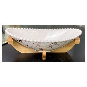 Bowl Ovalado Orilla Calada con Base de Madera