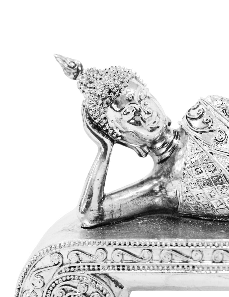 El Buda Recostado Plateado irradia una energía de máximo bienestar, sofisticación y misterio, ayudándote a crear un espacio lleno de buenas vibraciones. Finalmente, esta pieza te permite honrar la tradición holística con un estilo refinado y duradero.