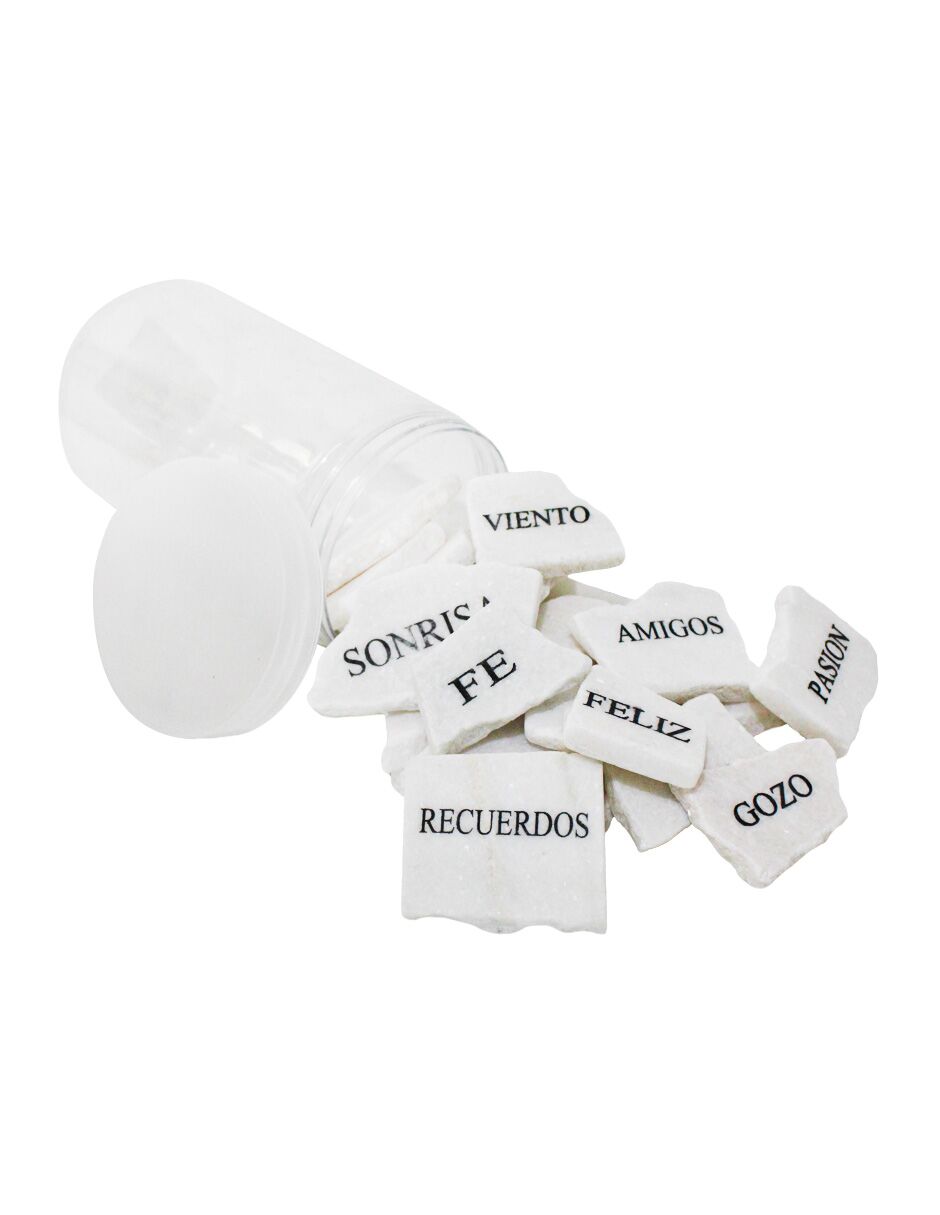 Caja con 24 piedras 8 con palabras emotivas y 16 sin palabras