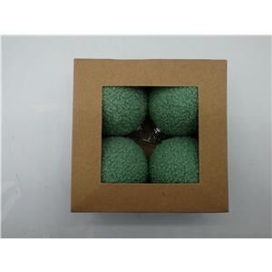 Caja con 4 esferas forradas de tela en color verde. Son perfectas para crear un ambiente acogedor y tradicional en tu árbol, llenándolo de calidez. Miden 8cm.