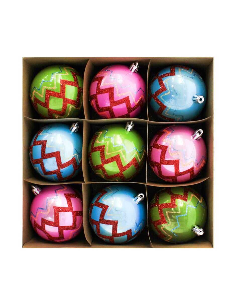 Caja con 9 esferas de plástico con divertido diseño de Huevos de Pascua. Ideal para una decoración temática y novedosa.