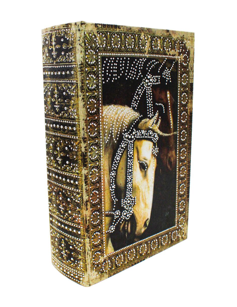 Caja guarda libros diseño caballo con pedreria de 27x18x7cm