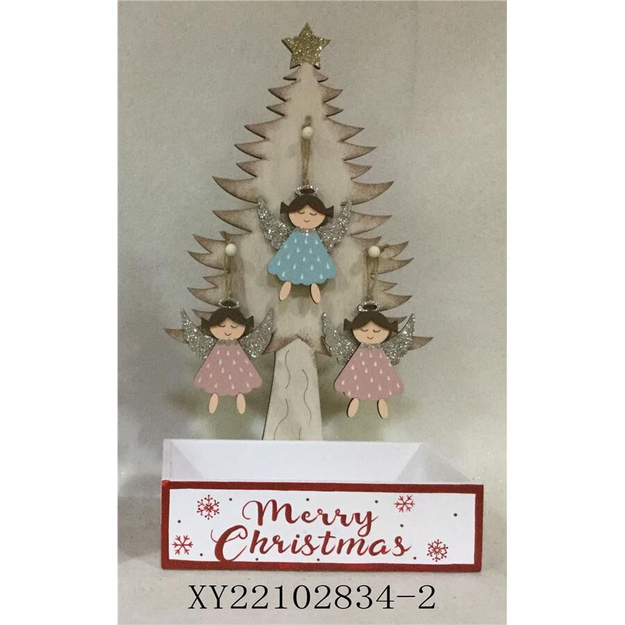 Caja de madera con árbol natural y ángeles colgantes de 14x23x41.5cm