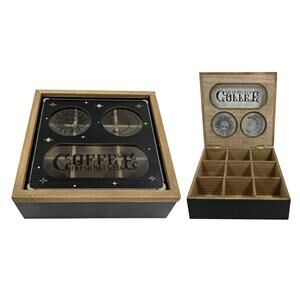 Organiza tus tés de forma práctica y elegante. Esta caja de madera con 9 divisiones y una cubierta de vidrio con el texto “coffee” te hará sentir el orden y el refinamiento. Es ideal para los amantes del café y el té.