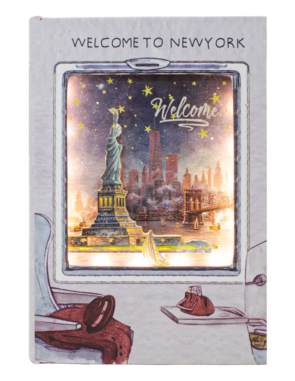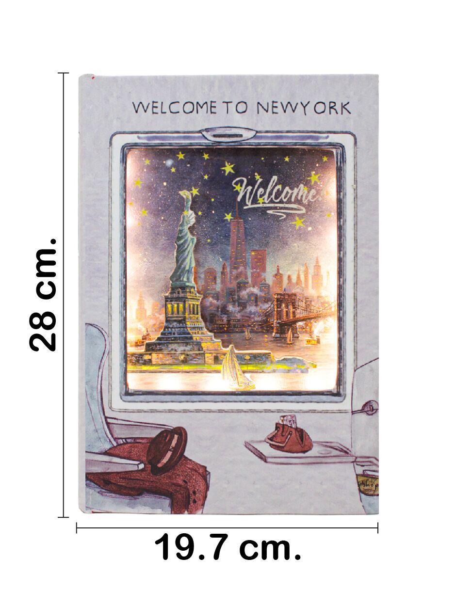 Caja guarda libros diseño New York con luz (usa baterías AAA) de 28x19x7.6cm
