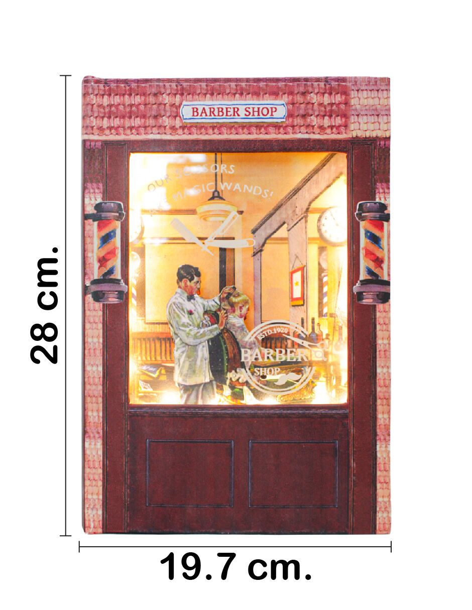 Viaja en el tiempo y añade un toque de nostalgia a tu decoración con la Caja Guarda Libros con Luz “El Rincón de la Barbería”. Esta pieza única, con unas dimensiones de 28x19x7.6cm, está diseñada para lucir como un libro antiguo, pero esconde un secreto: una encantadora escena de barbería vintage en su portada. La magia sucede al encender su luz interna (funciona con baterías AAA), que ilumina el detallado diseño y crea un ambiente cálido y acogedor. Es el escondite perfecto para tus tesoros más preciados o simplemente una pieza decorativa que robará miradas en tu estantería o mesa auxiliar.