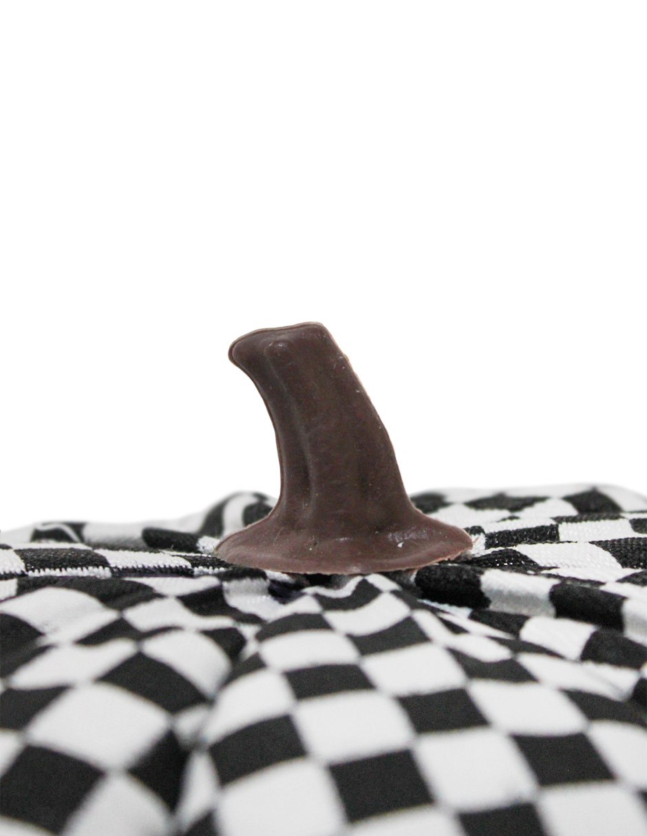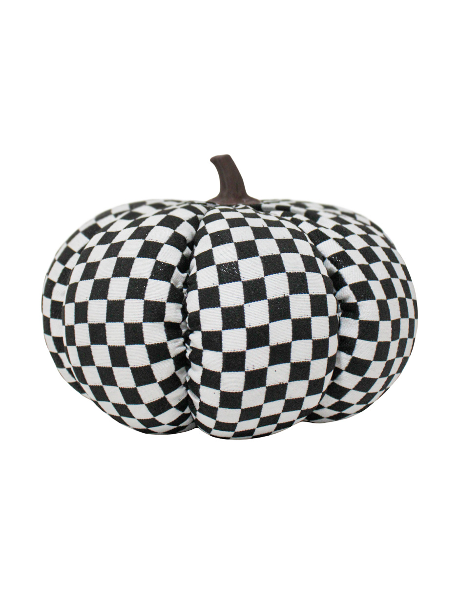 Una calabaza decorativa de 21x21x17cm con un audaz diseño de ajedrez. Esta pieza es ideal para una decoración de Halloween que busque un toque de originalidad. Su patrón geométrico la hace una pieza de arte funcional, perfecta para comedores o estudios.