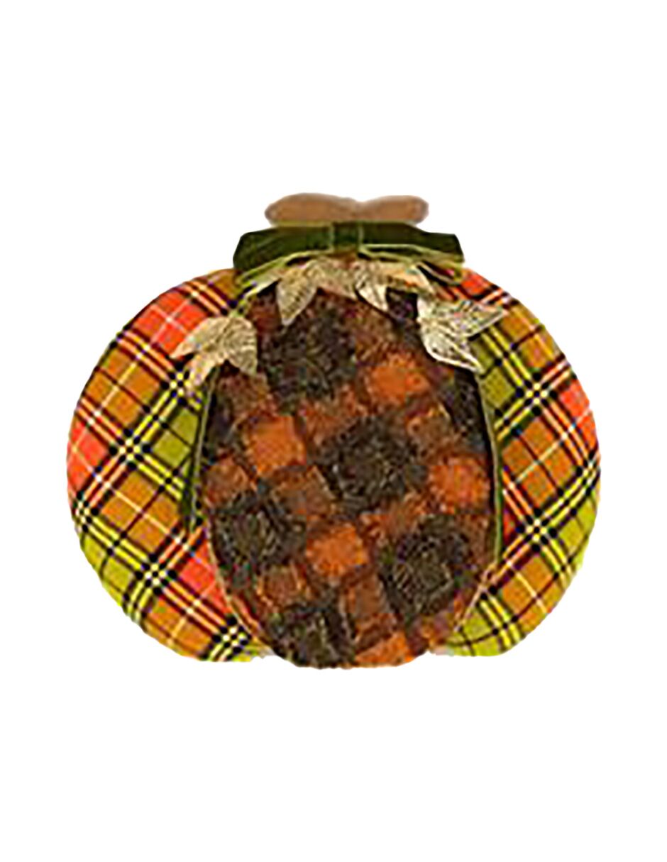 Un toque de originalidad y estilo para tu hogar. Esta calabaza decorativa forrada de tela es la pieza perfecta para añadir un aire sofisticado y de temporada. Con un diseño que combina una tela de cuadros naranja y verde con un centro a cuadros en contraste, y un tamaño de 47x41x10cm, su textura y detalles como el moño de terciopelo aportan una sensación de calidez, ideal para una mesa de centro o un rincón especial.