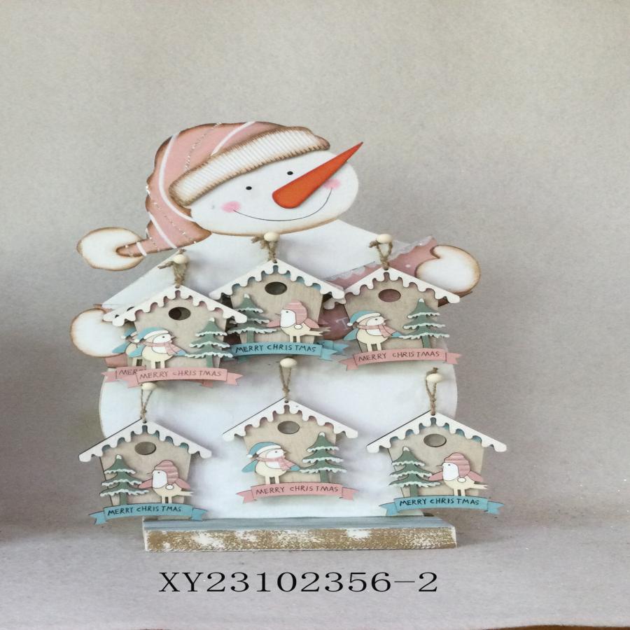 Un festivo calendario de madera con casas blancas con rosa y Santa en trineo, con medidas de 6×36.5×33 cm. Ideal para añadir un toque de fantasía y dulzura.