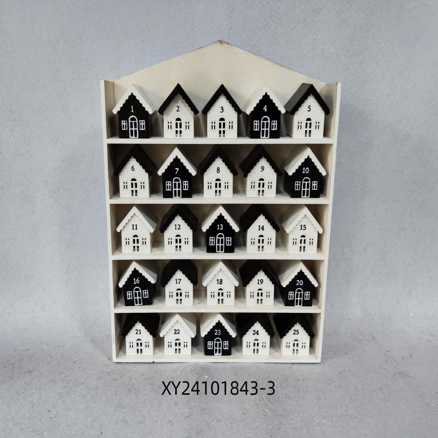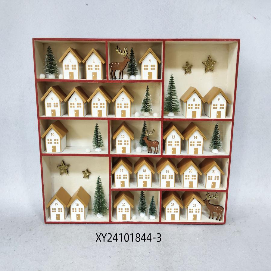 Un delicado calendario de madera rosa y azul con un nacimiento, con medidas de 7x31x40 cm. Ideal para añadir un toque de dulzura y espiritualidad.