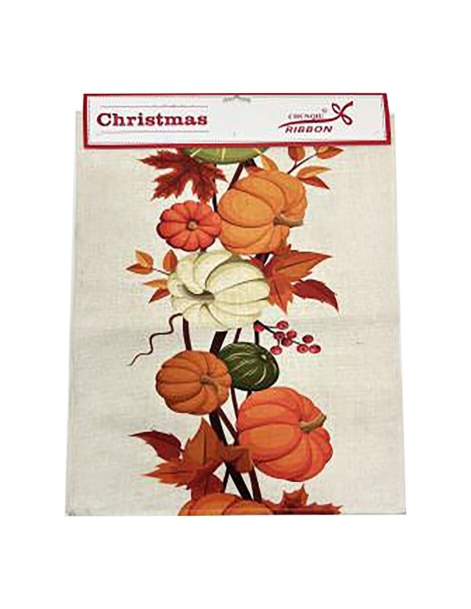 Camino de mesa en un elegante color beige con un encantador diseño de calabazas. Esta pieza es perfecta para quienes buscan una decoración rústica y acogedora. Su diseño evoca una sensación de calidez y nostalgia, ideal para crear un ambiente natural y lleno de encanto para las festividades de otoño. Material: poliéster. Medidas: 33x172cm.