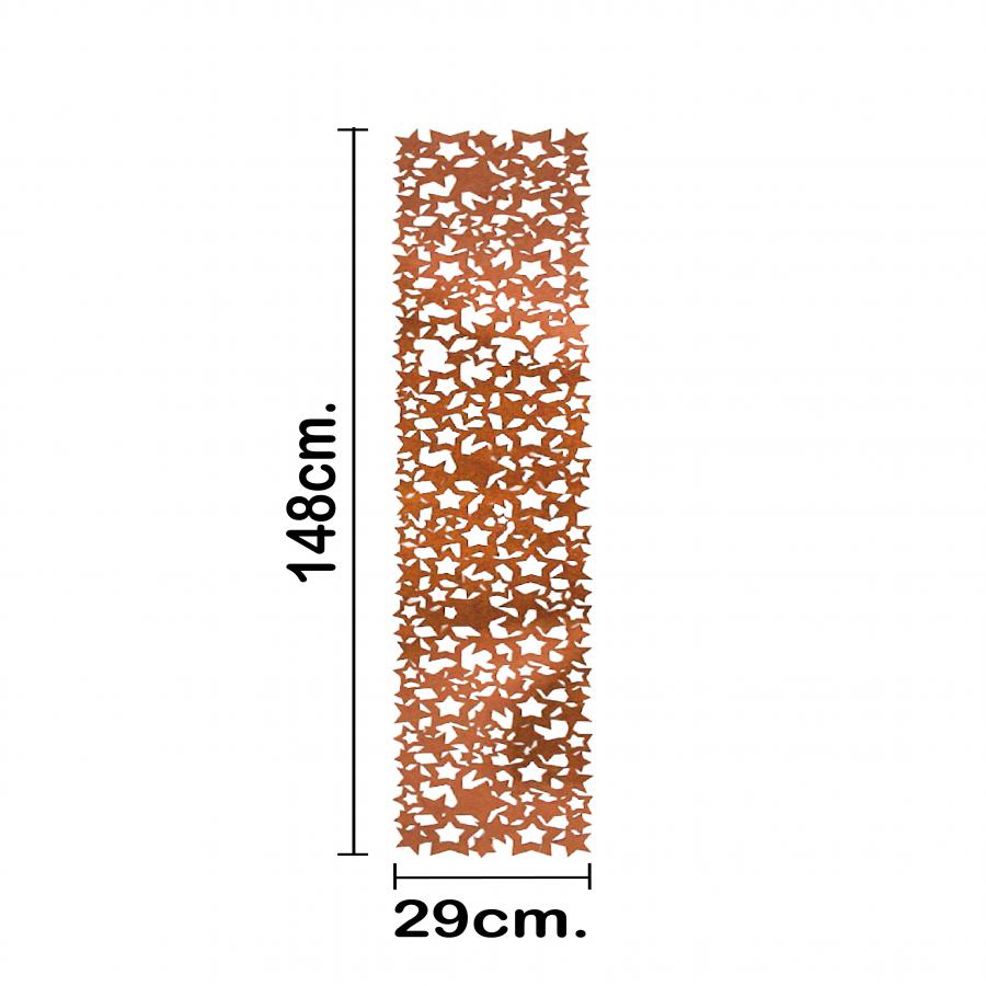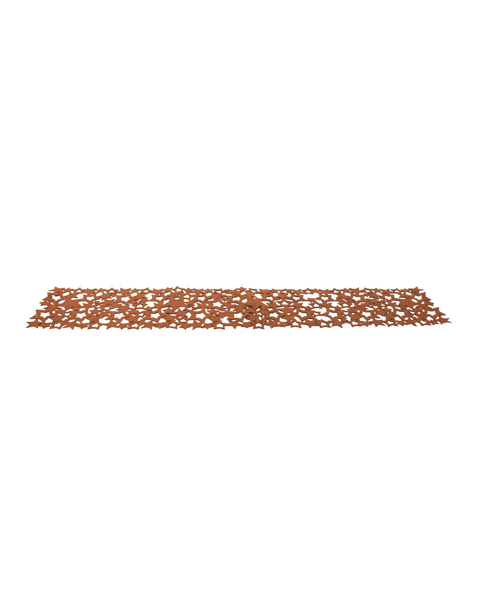 Un rústico camino de mesa de fieltro café con un diseño de estrellas, con medidas de 150x30x0.3 cm. Ideal para añadir un toque de calidez y encanto a tu mesa.