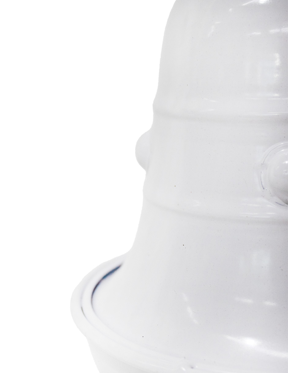 Delicada campana de metal con un acabado blanco y un cascabel colgante. Medidas: 20.5 x 33 cm. Su gran tamaño y color puro evoca la nieve, ideal para añadir un toque de elegancia, luminosidad y pureza invernal.