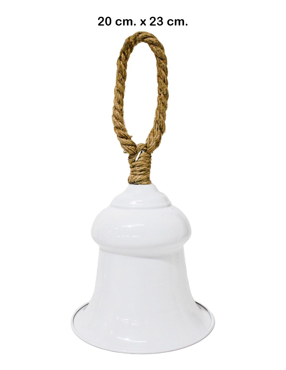 Delicada campana de metal con un acabado blanco y un adorno de lazo en la parte superior. Medidas: 20 x 23 cm. Su color puro evoca la nieve y es ideal para añadir un toque de elegancia, luminosidad y pureza invernal.