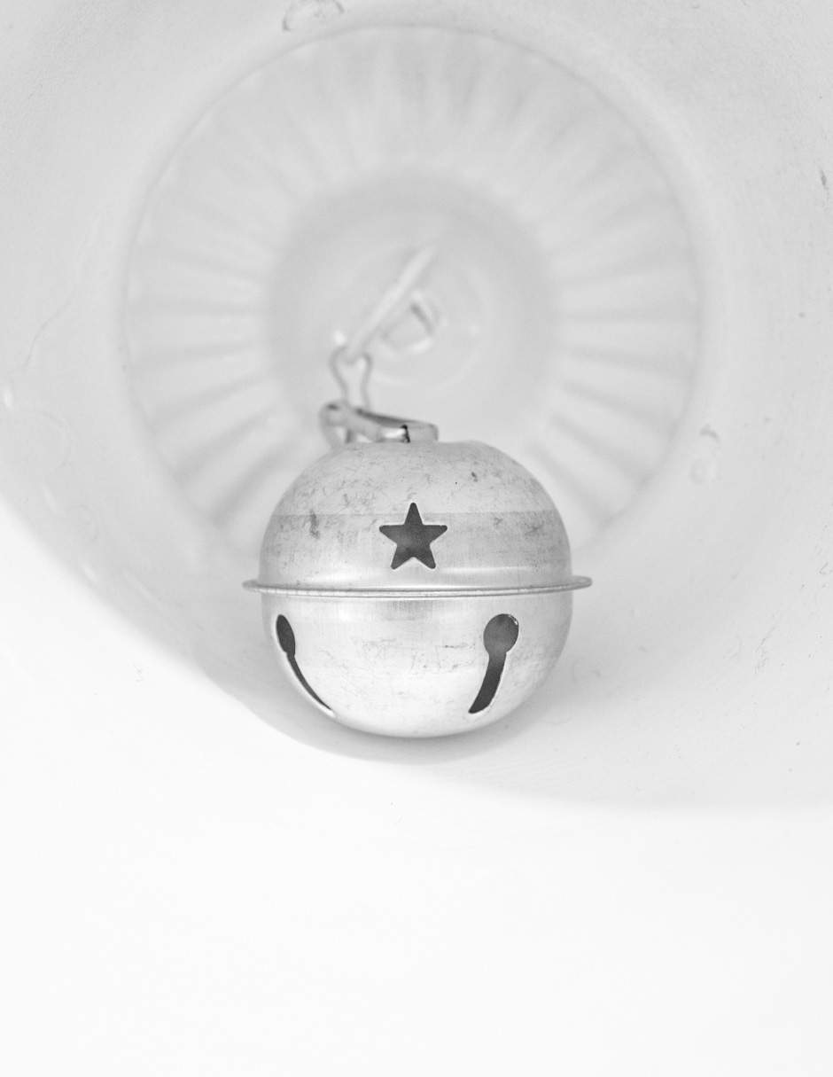 Delicada campana de metal con un acabado blanco y un adorno de lazo en la parte superior. Medidas: 24.5 x 31 cm. Su gran tamaño y color puro evoca la nieve, ideal para añadir un toque de elegancia y pureza invernal.