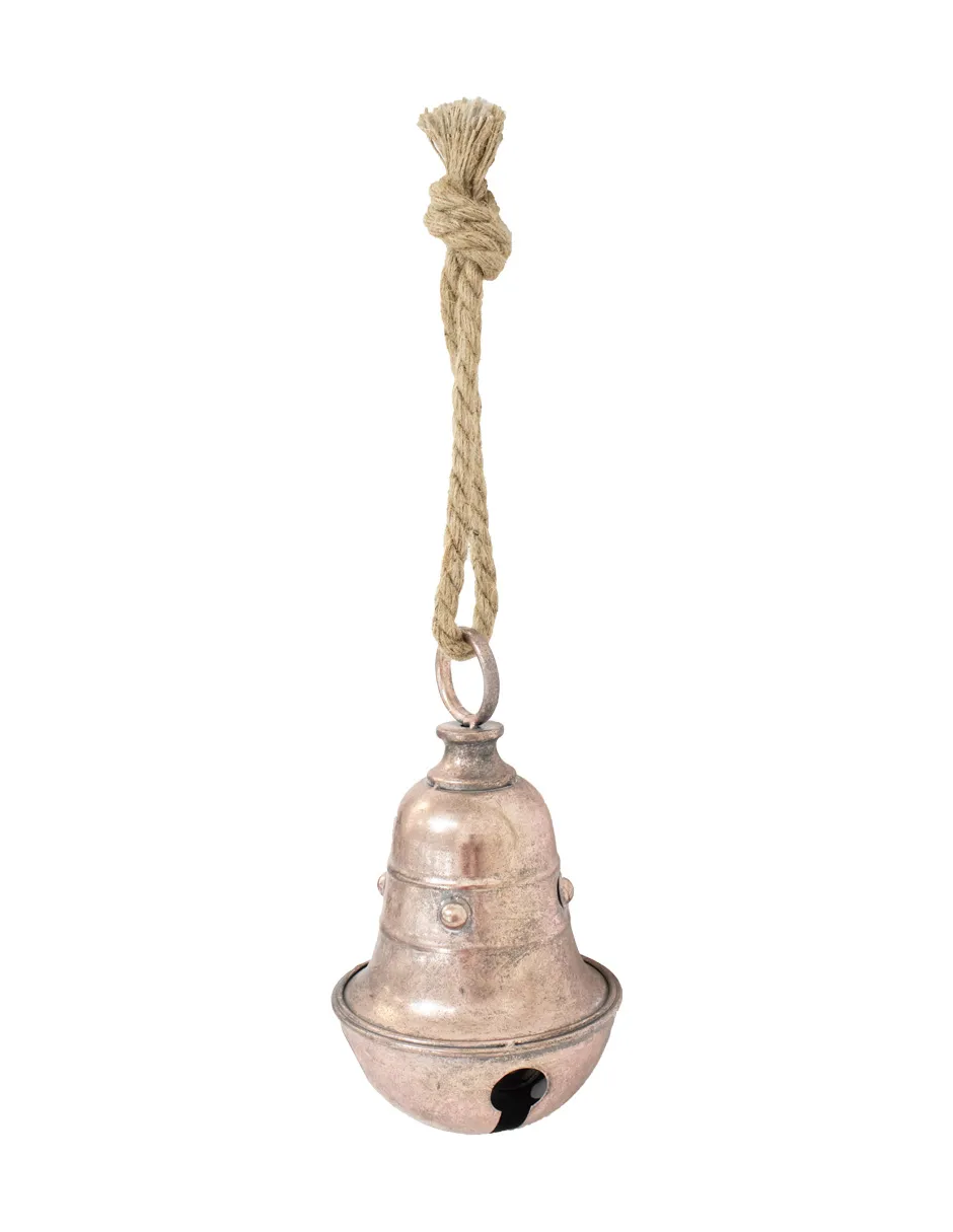 Atractiva campana de metal con un acabado en cobre vintage y un cascabel colgante. Medidas: 20.5 x 33 cm. Su gran tamaño y tono cálido son ideales para crear un ambiente acogedor y lleno de encanto rústico.