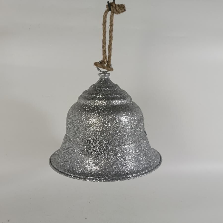 Campana decorativa de metal en un sofisticado color plateado. Perfecta para añadir un toque clásico y festivo a tu decoración navideña, evocando un ambiente de celebración. Material: metal. Medidas: 23x23x27cm.