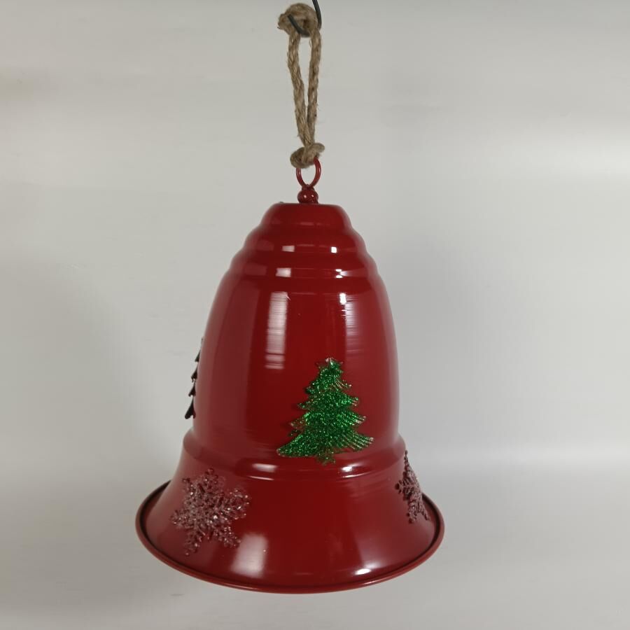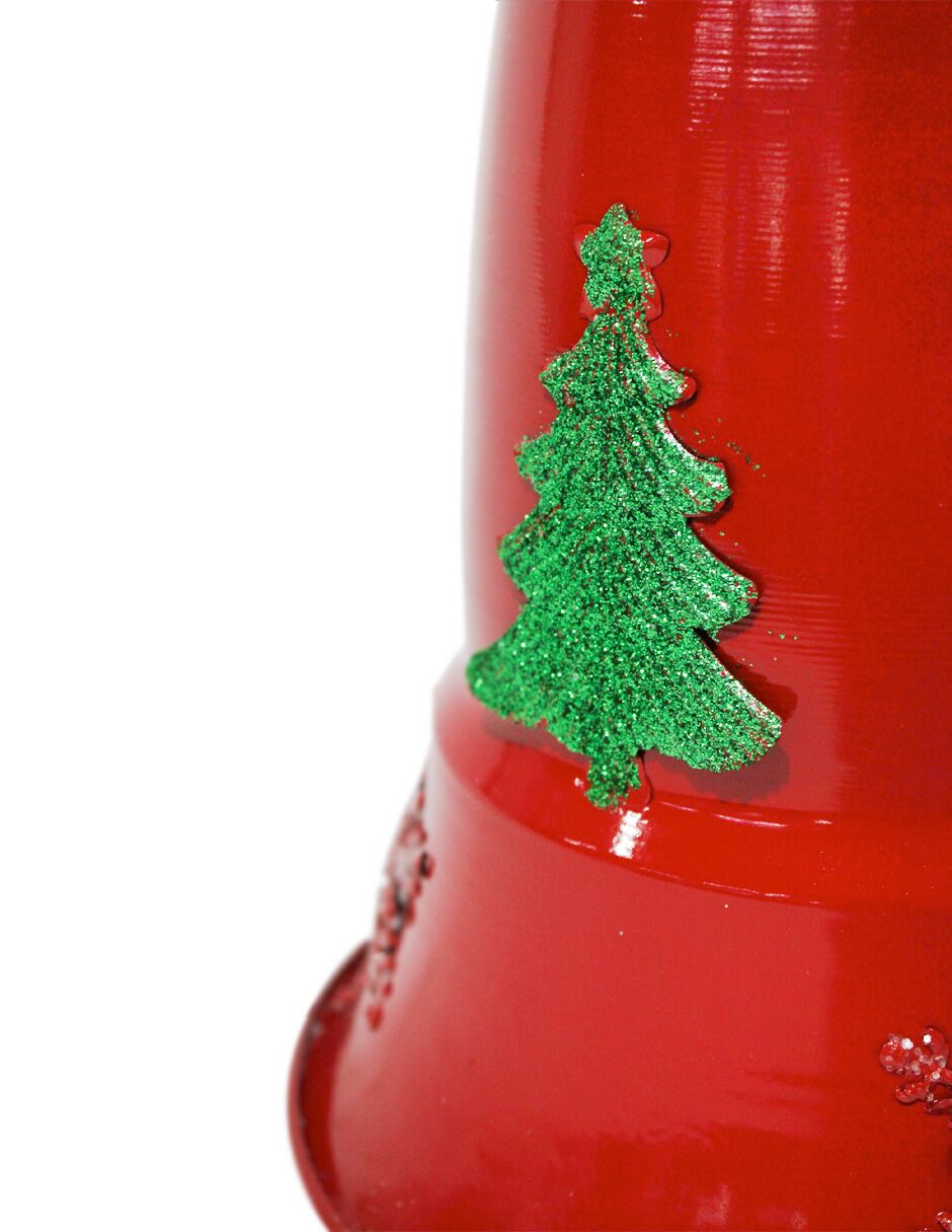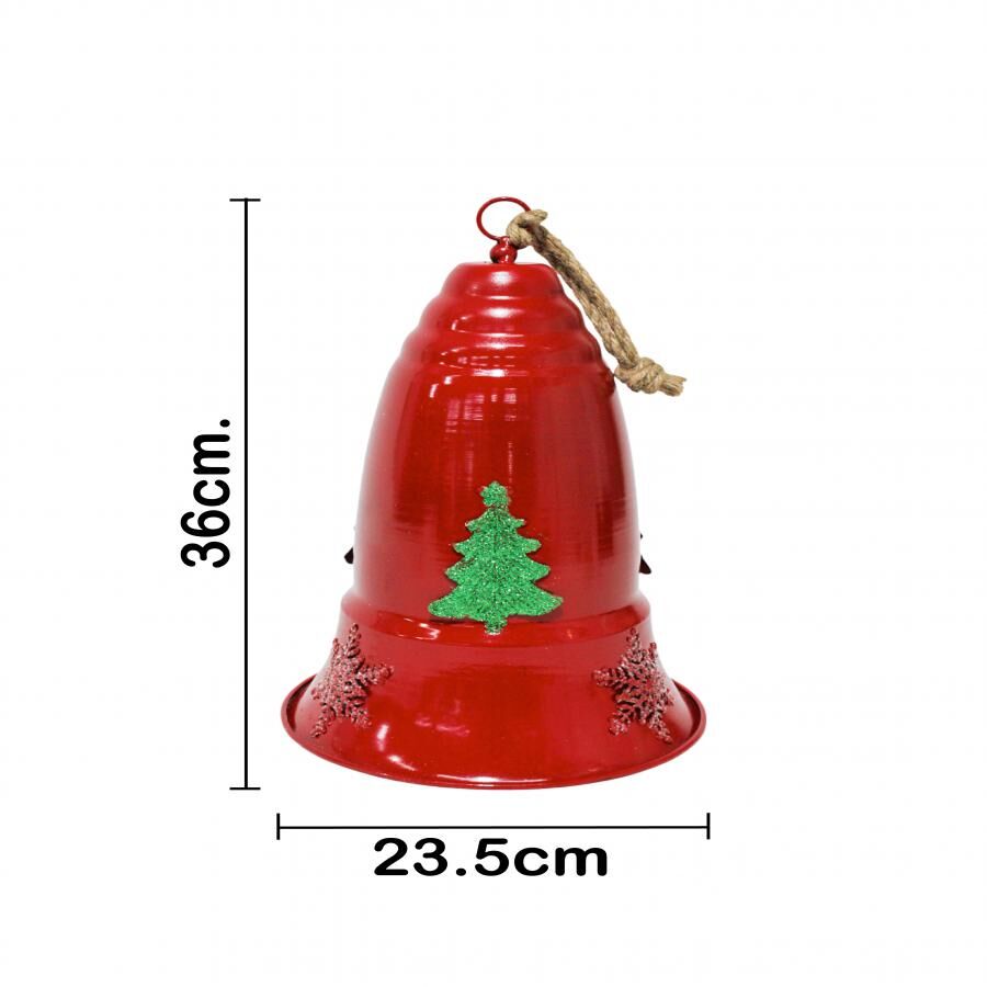 Campana decorativa de metal en un vibrante color rojo. Perfecta para añadir un toque clásico y festivo a tu decoración navideña, evocando un ambiente de celebración. Material: metal. Medidas: 23.5×23.5x38cm.