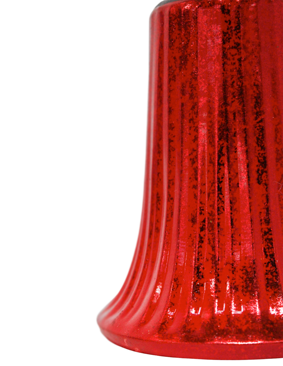 Una campana de metal roja con un diseño clásico a rayas. Es la pieza perfecta para añadir un toque de elegancia tradicional a tu árbol de Navidad o a una guirnalda. Su brillo y diseño festivo llenarán cualquier espacio de alegría y un espíritu navideño.