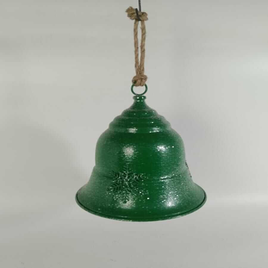 Campana decorativa de metal en un tradicional color verde. Perfecta para añadir un toque clásico y festivo a tu decoración navideña, evocando un ambiente de celebración. Material: metal. Medidas: 23x23x27cm.