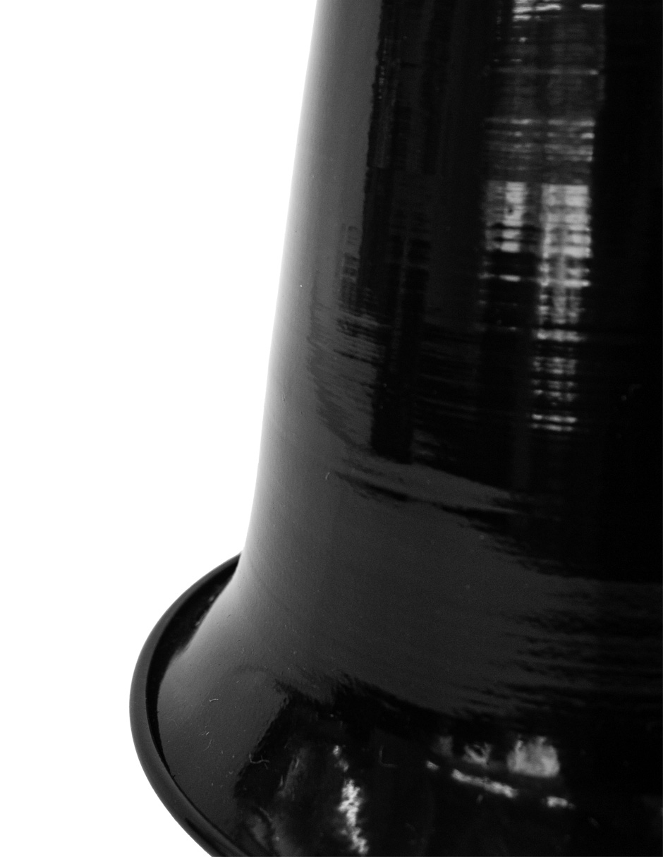 Elegante campana de metal con un acabado negro brillante y un adorno de lazo en la parte superior. Medidas: 19.5 x 24 cm. Su color sofisticado y brillo sutil son perfectos para añadir un toque de distinción y modernidad a tu decoración.