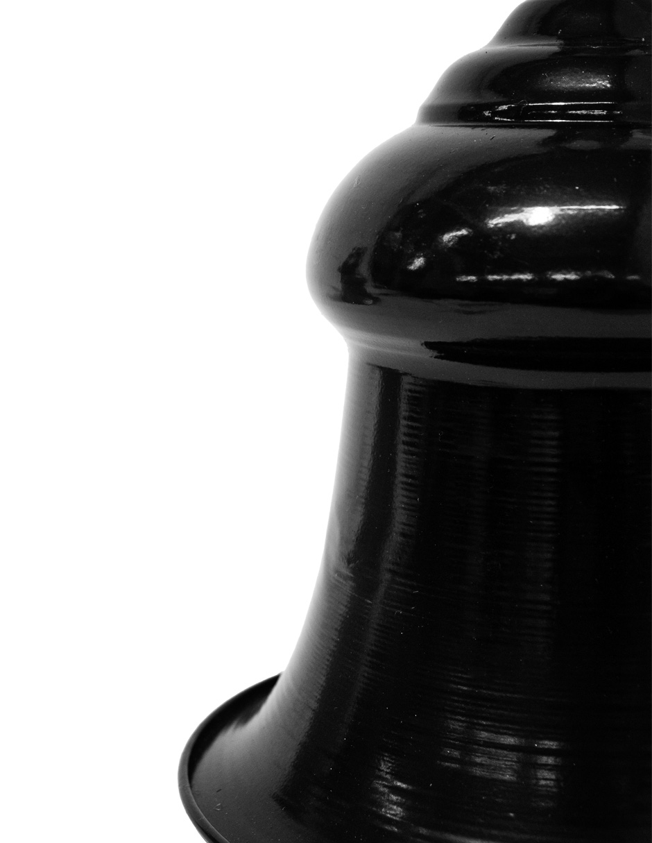 Elegante campana de metal con un acabado negro brillante y un adorno de lazo en la parte superior. Medidas: 20 x 23 cm. Su color sofisticado y brillo sutil son perfectos para añadir un toque de distinción, lujo y modernidad a tu decoración.
