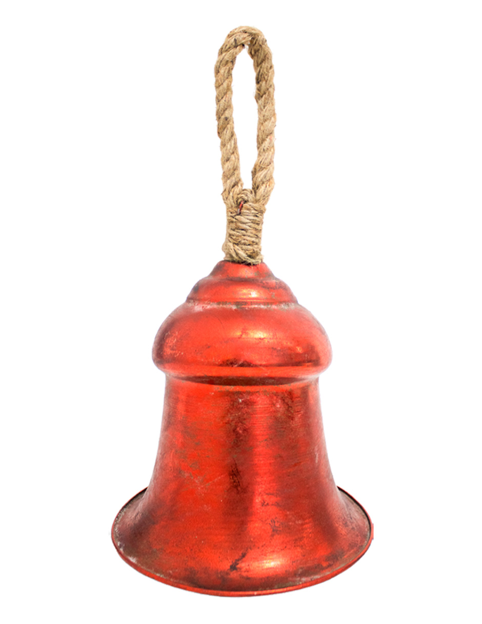 Vibrante campana de metal con un acabado rojo brillante vintage y un adorno de lazo en la parte superior. Medidas: 22.5 x 30 cm. Su color y brillo son perfectos para añadir energía, alegría y un toque festivo.