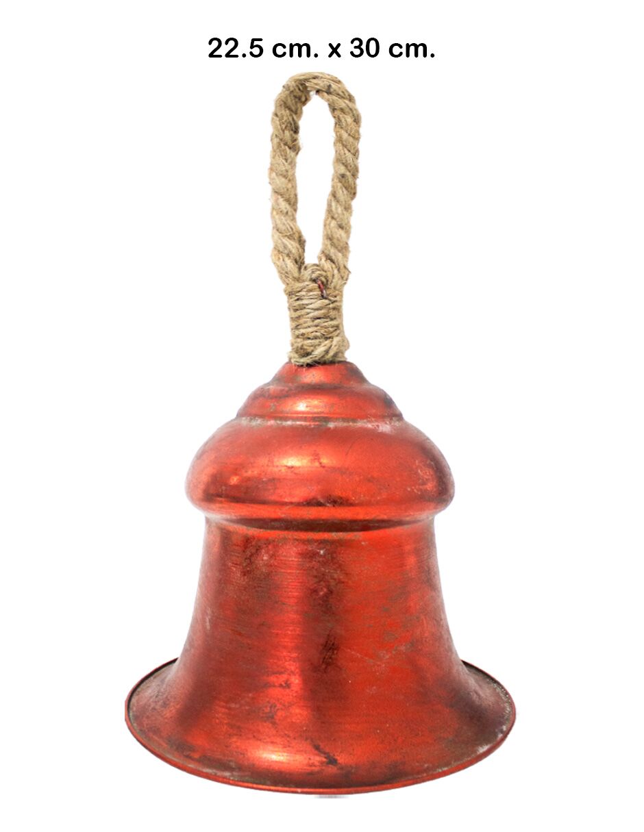 Clásica campana de metal con un acabado rojo vintage y un adorno de lazo en la parte superior. Medidas: 22.5 x 30 cm. Su color festivo y diseño tradicional son ideales para inyectar alegría y un toque clásico a tu decoración.