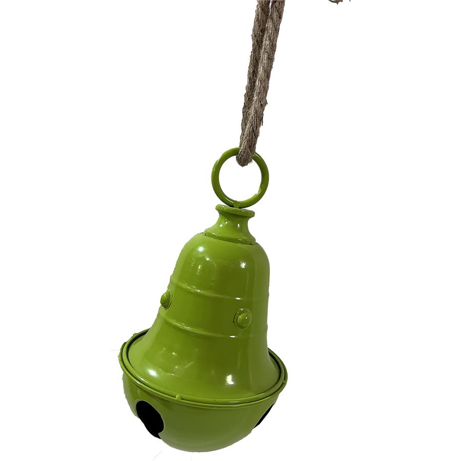 Refrescante campana de metal con un acabado verde limón brillante y un cascabel colgante. Medidas: 16.5 x 29 cm. Su color vibrante y juvenil es perfecto para inyectar un toque de frescura y originalidad a tu decoración festiva.