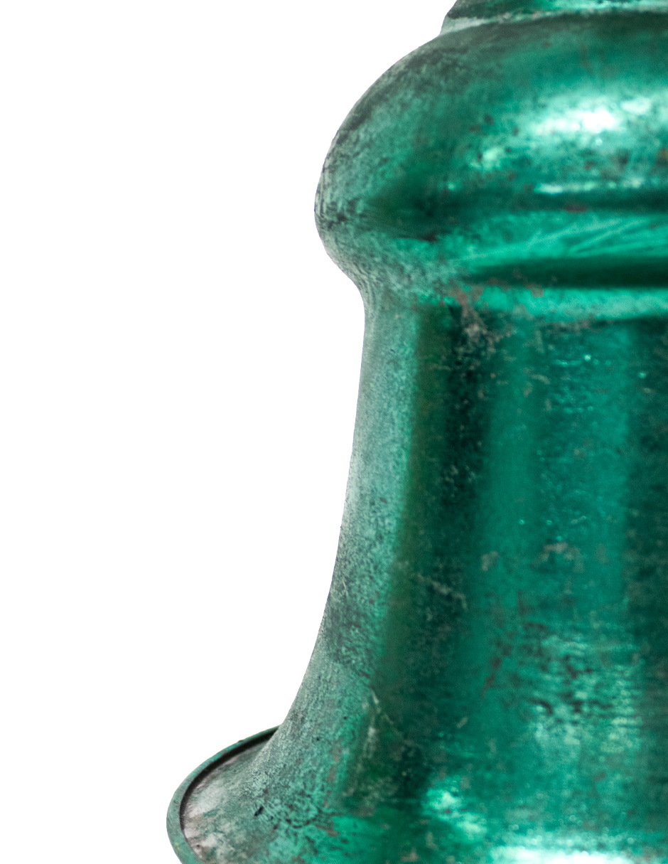 Clásica campana de metal con un acabado verde vintage y un cascabel colgante. Medidas: 22.5 x 30 cm. Su diseño envejecido evoca un encanto rústico, ideal para añadir un sonido suave y una atmósfera tradicional.
