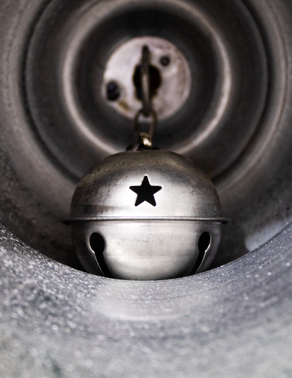 Clásica campana de metal con un acabado verde vintage y un cascabel colgante. Medidas: 20 x 23 cm. Su diseño envejecido evoca un encanto rústico, ideal para añadir un sonido suave y una atmósfera tradicional.