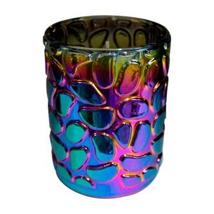 Candelabro con vela iridiscente diseño burbujas de 7.5x10cm