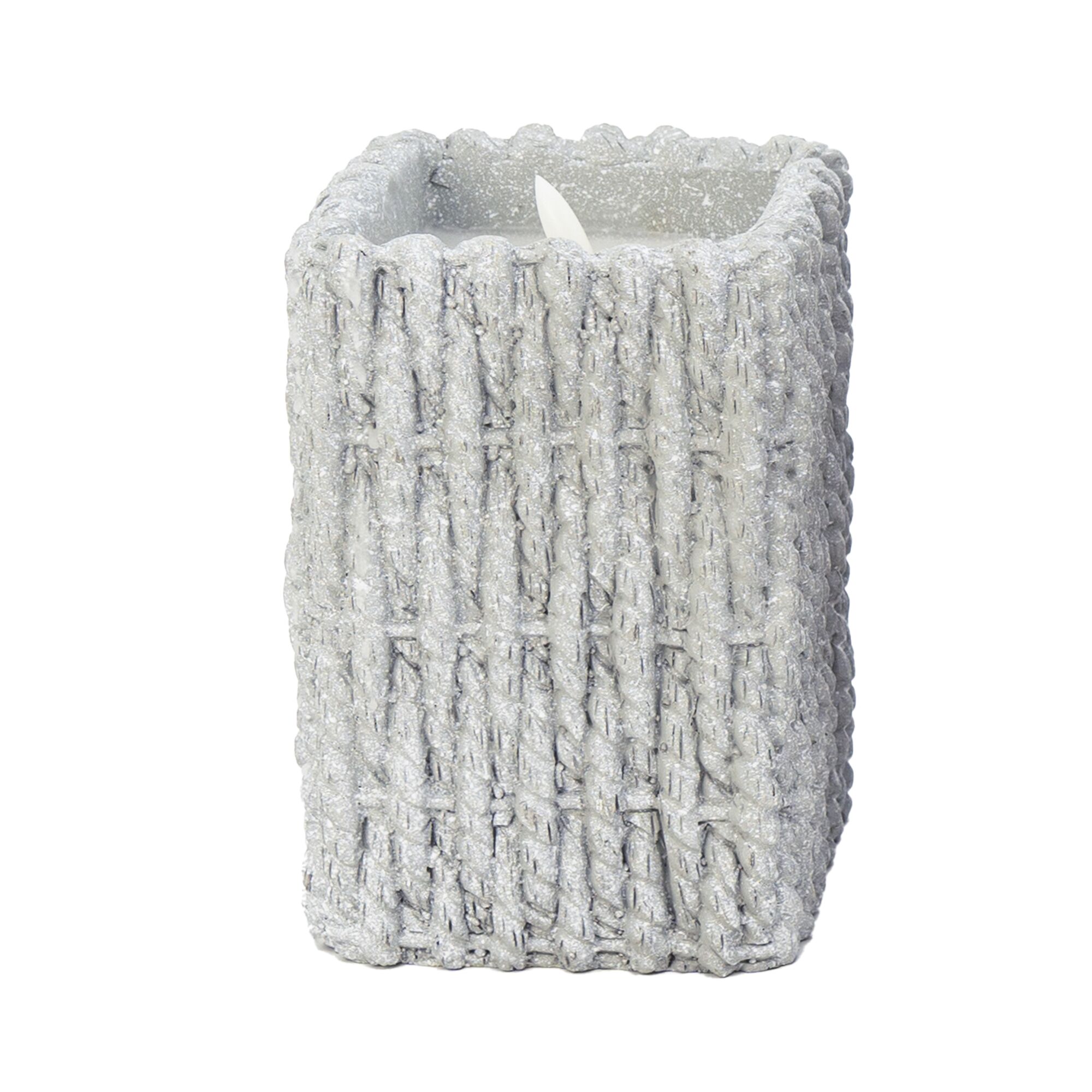 Candelabro cuadrado de resina con cera diseño cuerda gris y luz LED de 11x11x16cm (Usa 2 baterías AA
