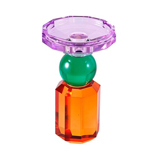 Candelabro de cristal morado con verde y ámbar de 9x9x15.3cm
