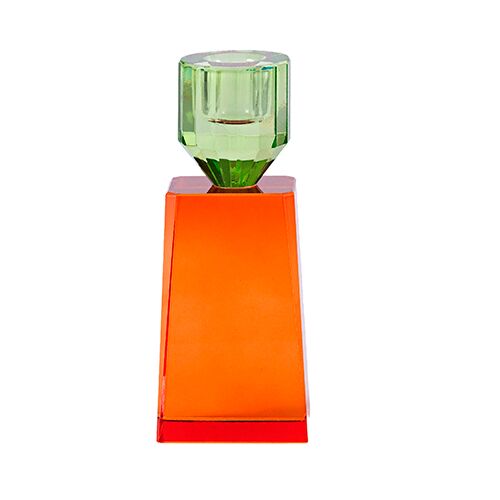 Candelabro de cristal naranja con verde de 5×6.3×15.5cm
