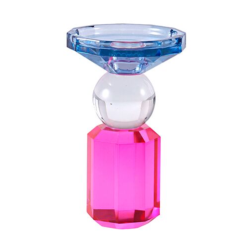 Candelabro de cristal rosa con azul de 9.3×9.3×15.5cm